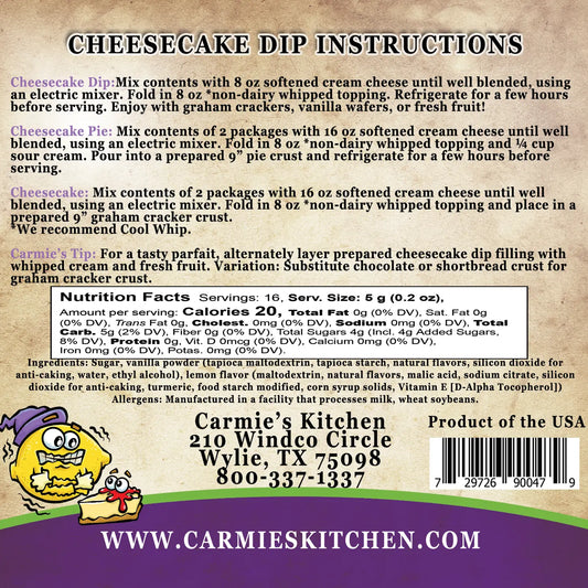Carmie's Kitchen Cheesecake Dip Mix