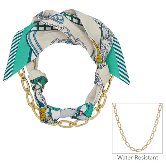 Cream and Turquoise Knotted Scarf Chain Necklace