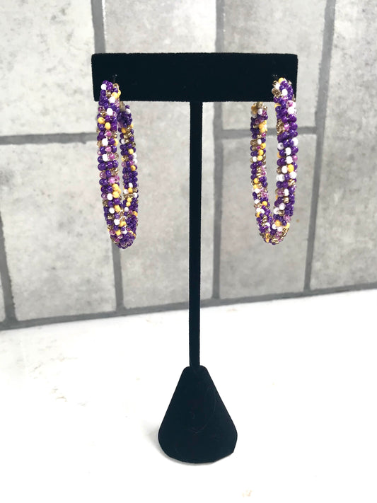 Paradise Beaded Hoop Earrings in Purple/Yellow