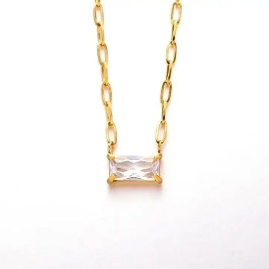 Titanium Steel Simple Rectangle Inlay Zircon Necklace