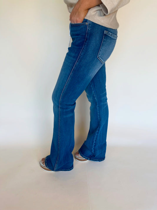 High Rise Medium Stone Wash Flare Jean