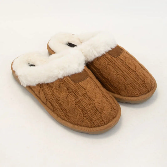 Cozy Cable Knit Fur-Lined Slippers