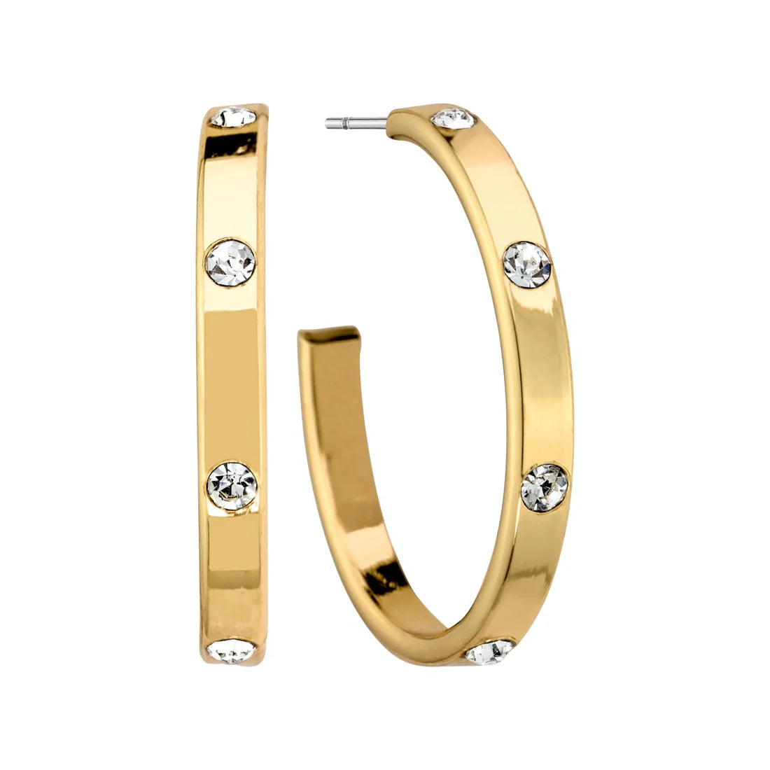 Add some sparkle to your look with these 1" hoop earrings featuring rhinestone stud accents. Elevate any outfit and stand out in style.