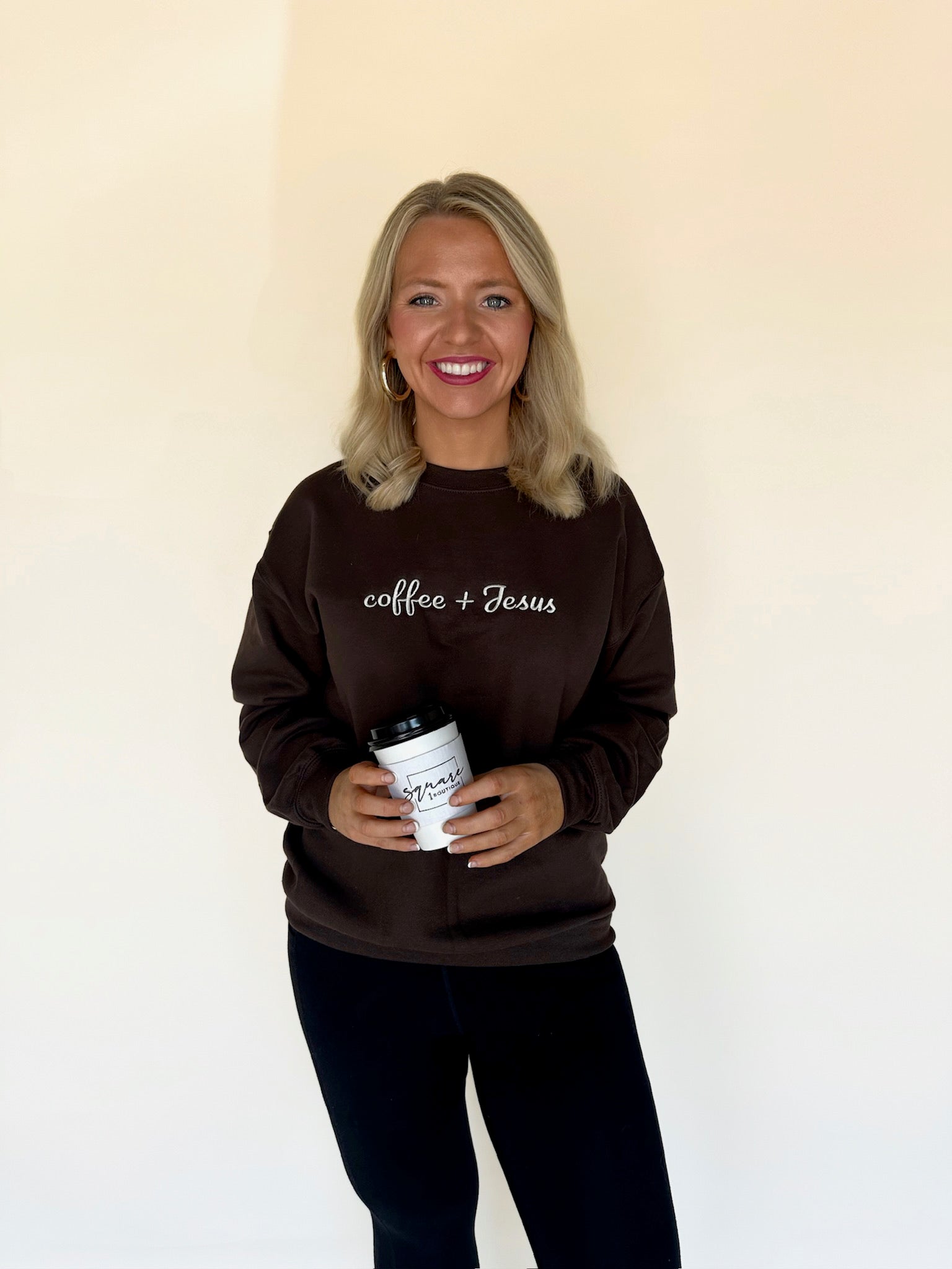 Kick back in style with the Coffee + Jesus Embroidery Sweatshirt! This unisex Jerzees sweatshirt features eye-catching embroidery and is available in two fun color options. Perfect for fueling your day with faith and a little bit of caffeine.