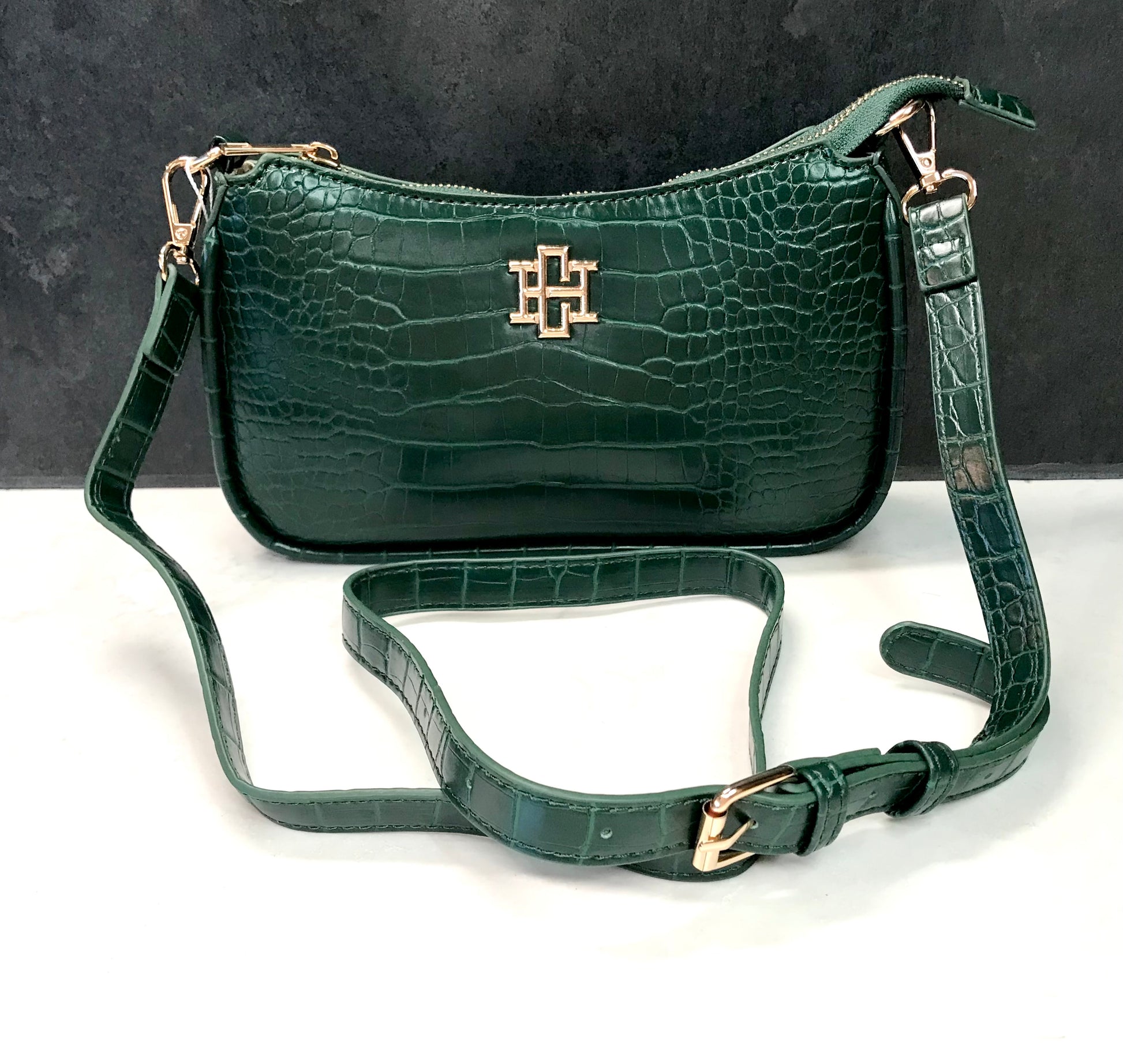 The Joan Crossbody is the perfect mix of fun and function! Made from textured, slightly metallic vegan leather, this bag shines on travel days and every day too. Switch up your style with a removable chain accent that doubles as a strap, plus an adjustable crossbody strap for the perfect fit. Inside, a zippered pocket and two open slots keep your essentials tidy. Finished with the sleek Caroline Hill logo and a top zipper closure, this bag adds a playful sparkle to any outfit!