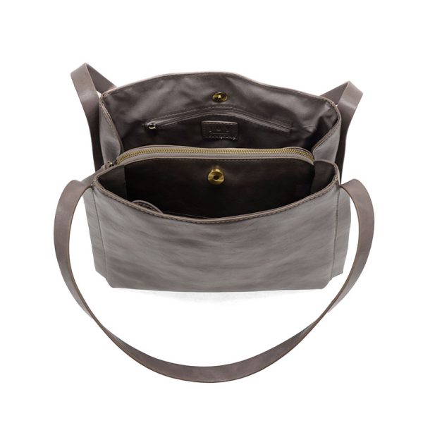 Stay stylishly organized with the Joanna Medium Tote, designed for those who love a polished look with plenty of space. Made from glossy vegan leather, this must-have bag features three smart compartments—a center zip and two magnetic snap pockets—to keep your essentials in check while adding a playful yet sophisticated touch to your outfit.