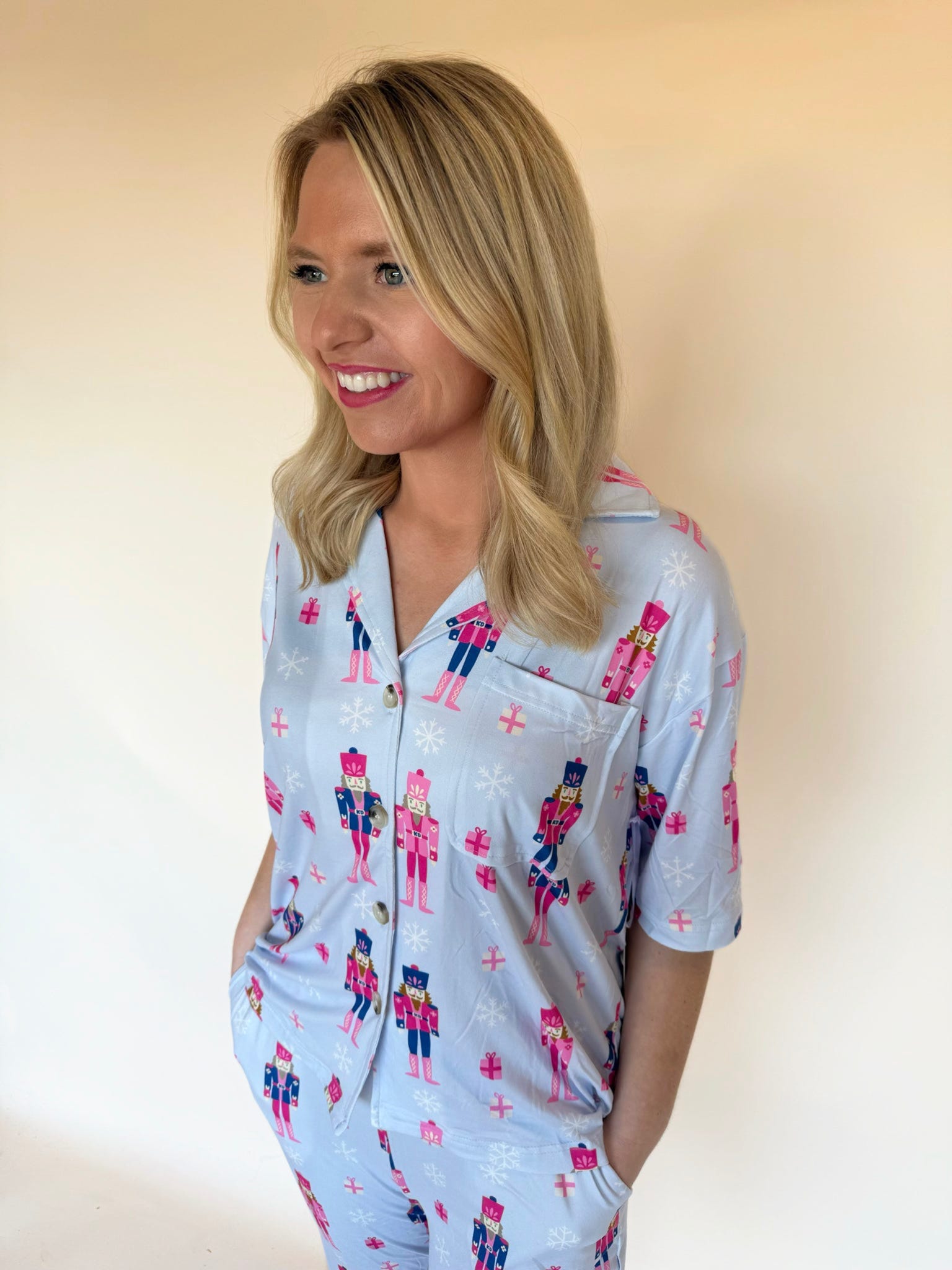 Get in the holiday spirit with our Nutcrackers Christmas Lounge Pants Set! These charming pajamas feature adorable nutcrackers on a soft, light pink fabric for ultimate comfort and festive fun. Perfect for snuggling by the fire or enjoying a holiday movie marathon.