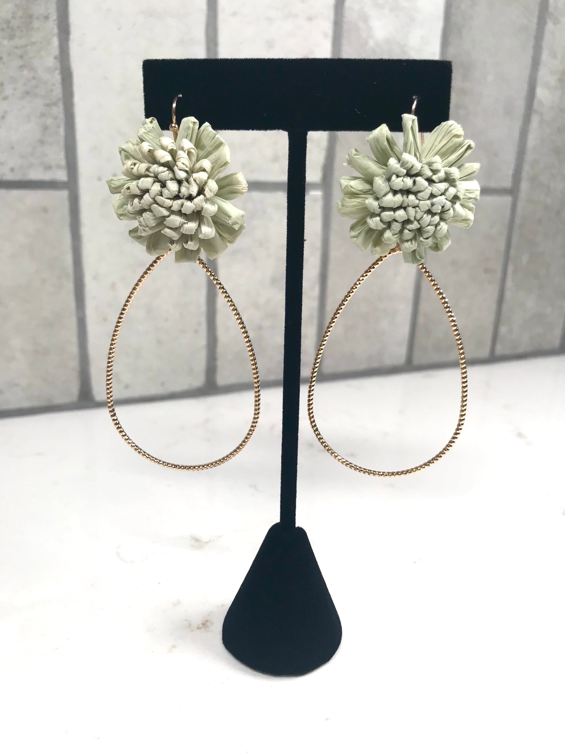 Raffia Flower Teardrop Earring