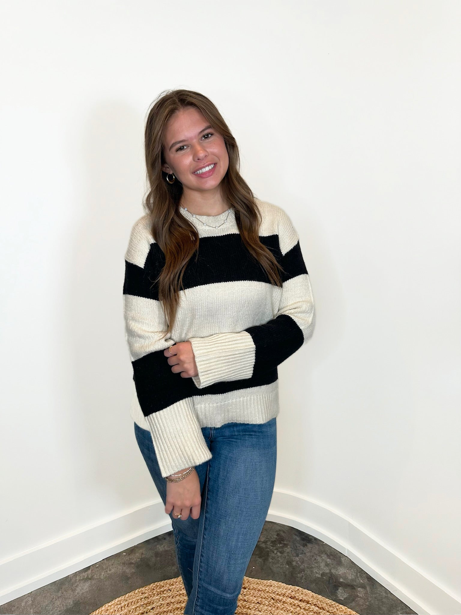 Add some fun to your daily wardrobe with Ruby's Colorblock Sweater. Featuring a playful pattern and bold colorblock design, this pullover is perfect for adding a pop of personality to any outfit. Stay stylish and comfortable every day with this one-of-a-kind piece.