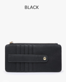 Carry all of your essentials with ease and sophistication with the Saige Slim Card Holder Wallet. Crafted from vegan leather with gold-tone hardware and a stylish zipper change pouch, this wallet is the perfect way to store your cards, ID, and cash. Keep your belongings safe and organized while looking chic as can be!