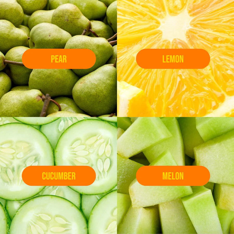 - Top Notes: Green, Melon, Cucumber, Pear, Citrus, Lemon