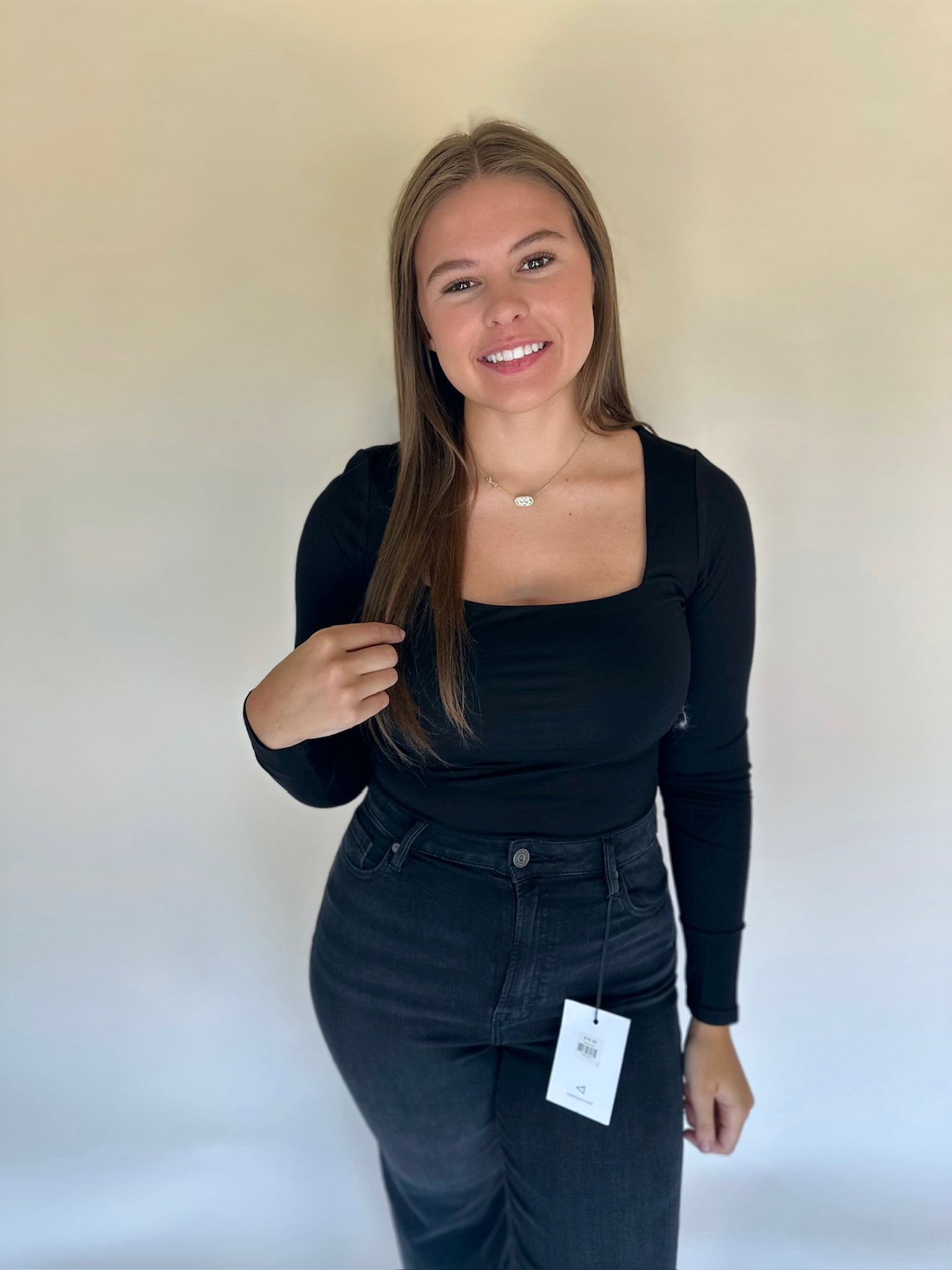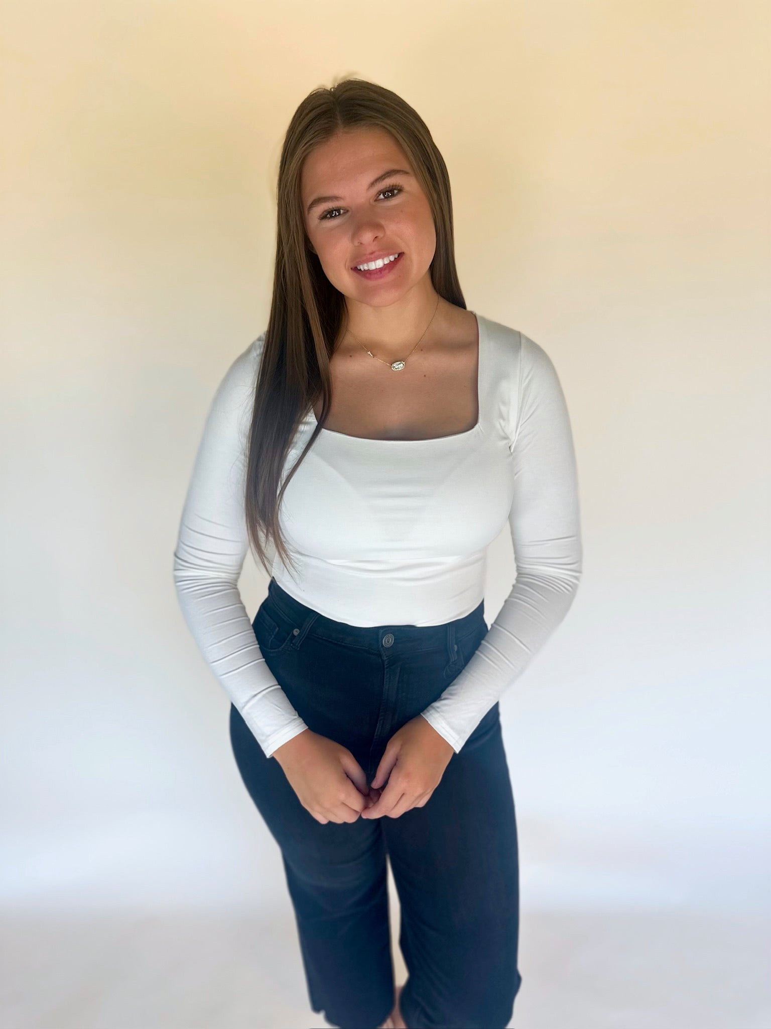 Meet your new style secret: the Thena Square Neck Bodysuit. With its flattering long sleeves and sharp square neckline, it hugs your curves while adding a cheeky twist to any look. The contour fit keeps things sleek and playful, making it ideal for layering or rocking solo with your favorite bottoms. Effortless charm, all day long!