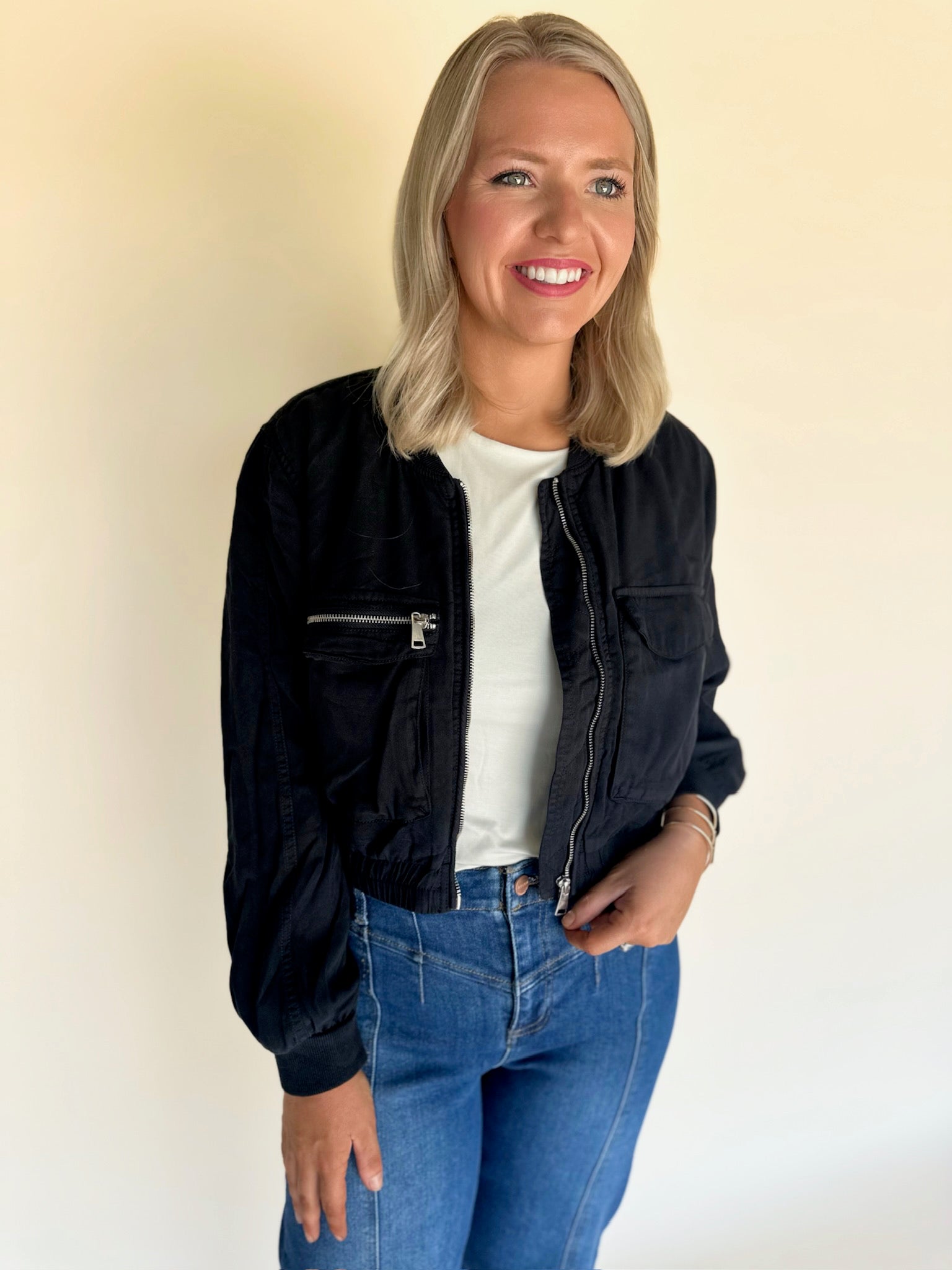 The Maika Tencel Bomber Jacket is your new go-to for a breezy, stylish layer. Crafted for comfort and cool vibes, its soft fabric and classic bomber cut make it perfect for both laid-back days and spontaneous nights out. Add a splash of easygoing charm to any outfit with this playful essential.