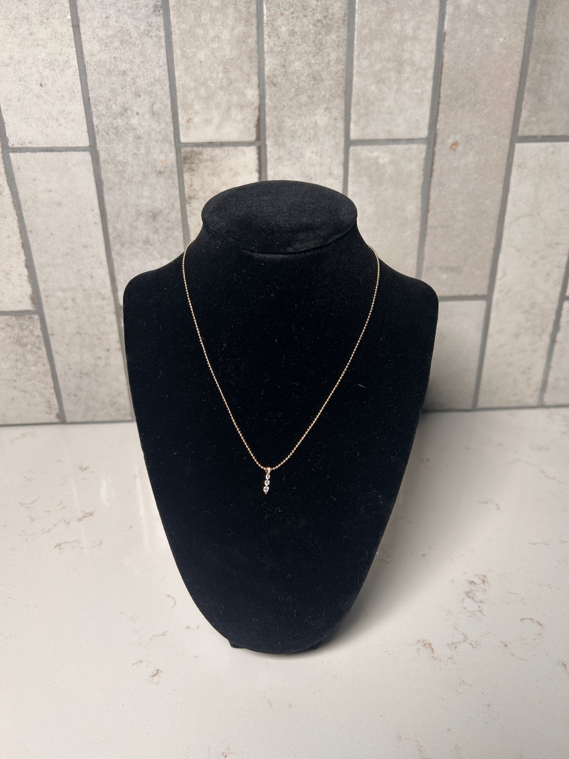 Delicate with just the right amount of shine, the Three Sparkles in a Row Necklace features three petite sparkling stones set vertically along a fine gold-tone chain. This minimalist design adds a subtle glow that’s perfect for everyday wear while still feeling special enough for layering or dressing up. A timeless piece you’ll reach for again and again.