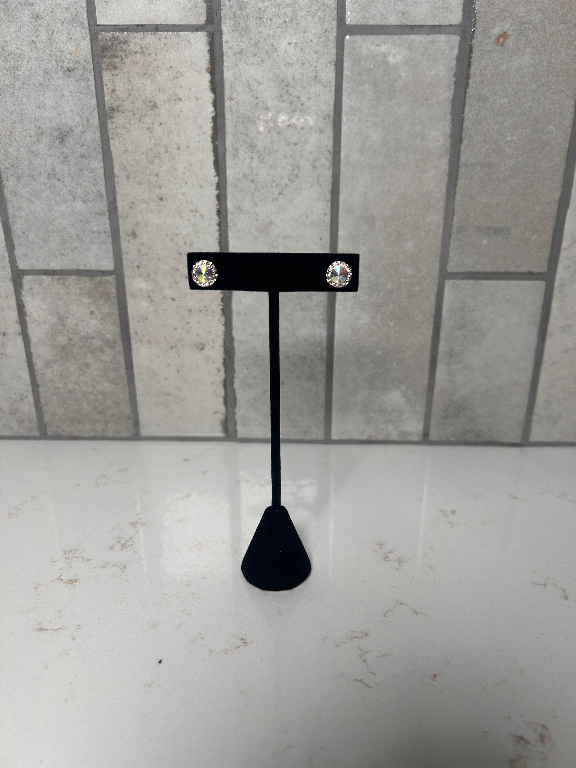 These classic halo stud earrings are the definition of effortless elegance. Featuring a brilliant round crystal center framed by a delicate halo of shimmering accents, they add just the right amount of sparkle to any look. Finished in a gold-dipped setting, these studs are perfect for everyday wear while still feeling elevated enough for special occasions. A timeless accessory you’ll reach for again and again.