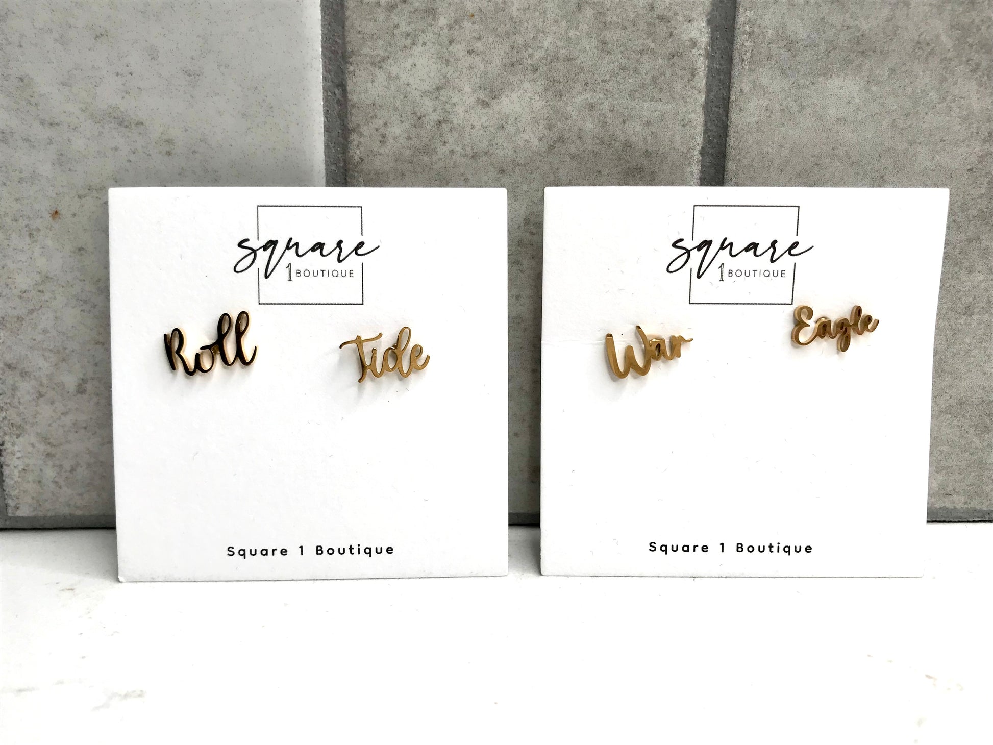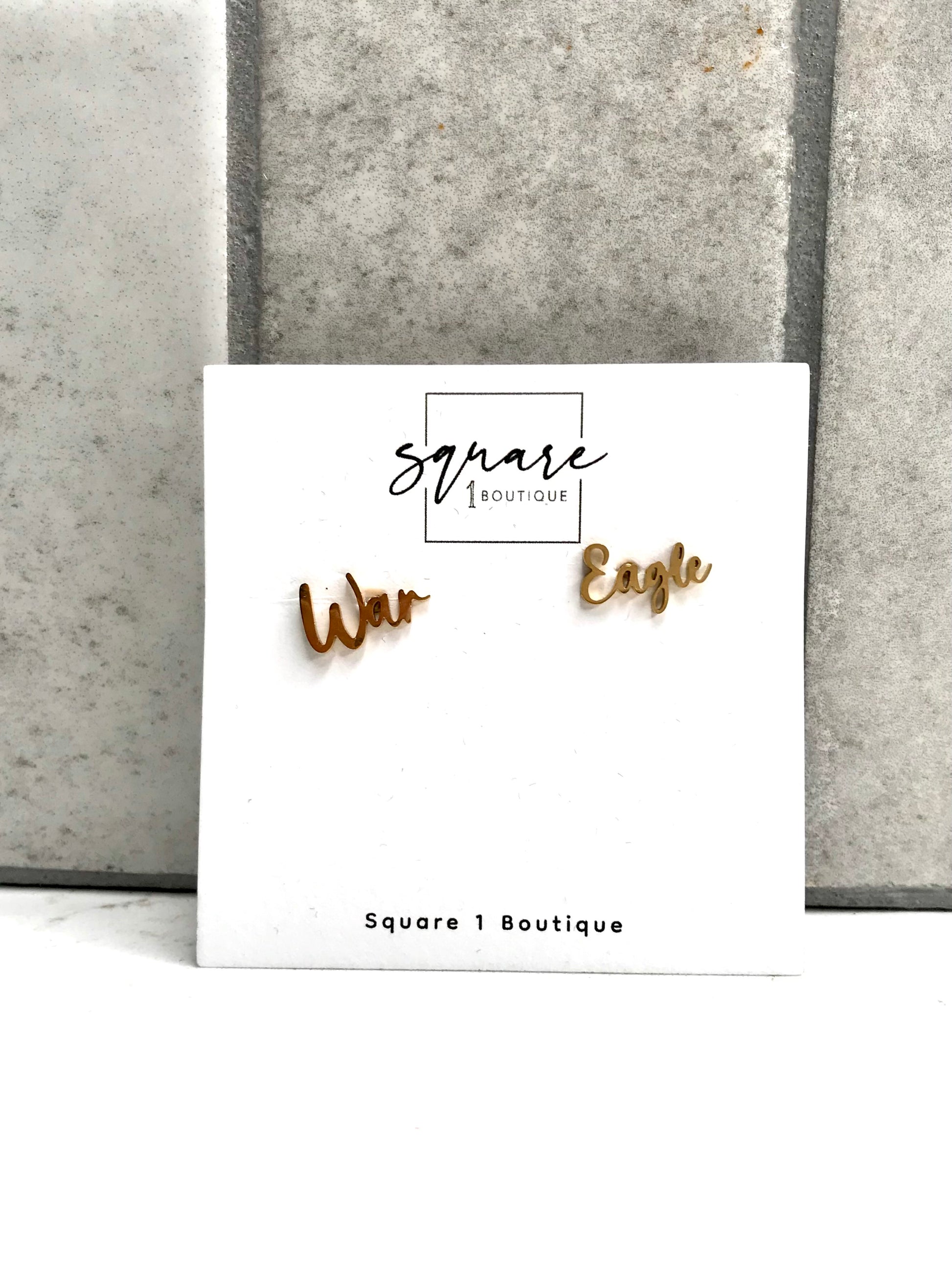 Show off your Auburn pride with these charming War Eagle Gold Stud Earrings! Perfect for game day or gifting to any Auburn fan, these hypoallergenic stainless steel earrings are gentle on sensitive ears and resist tarnishing. Measuring about 1/2 inch, they add a subtle yet spirited touch to your look. War Eagle!