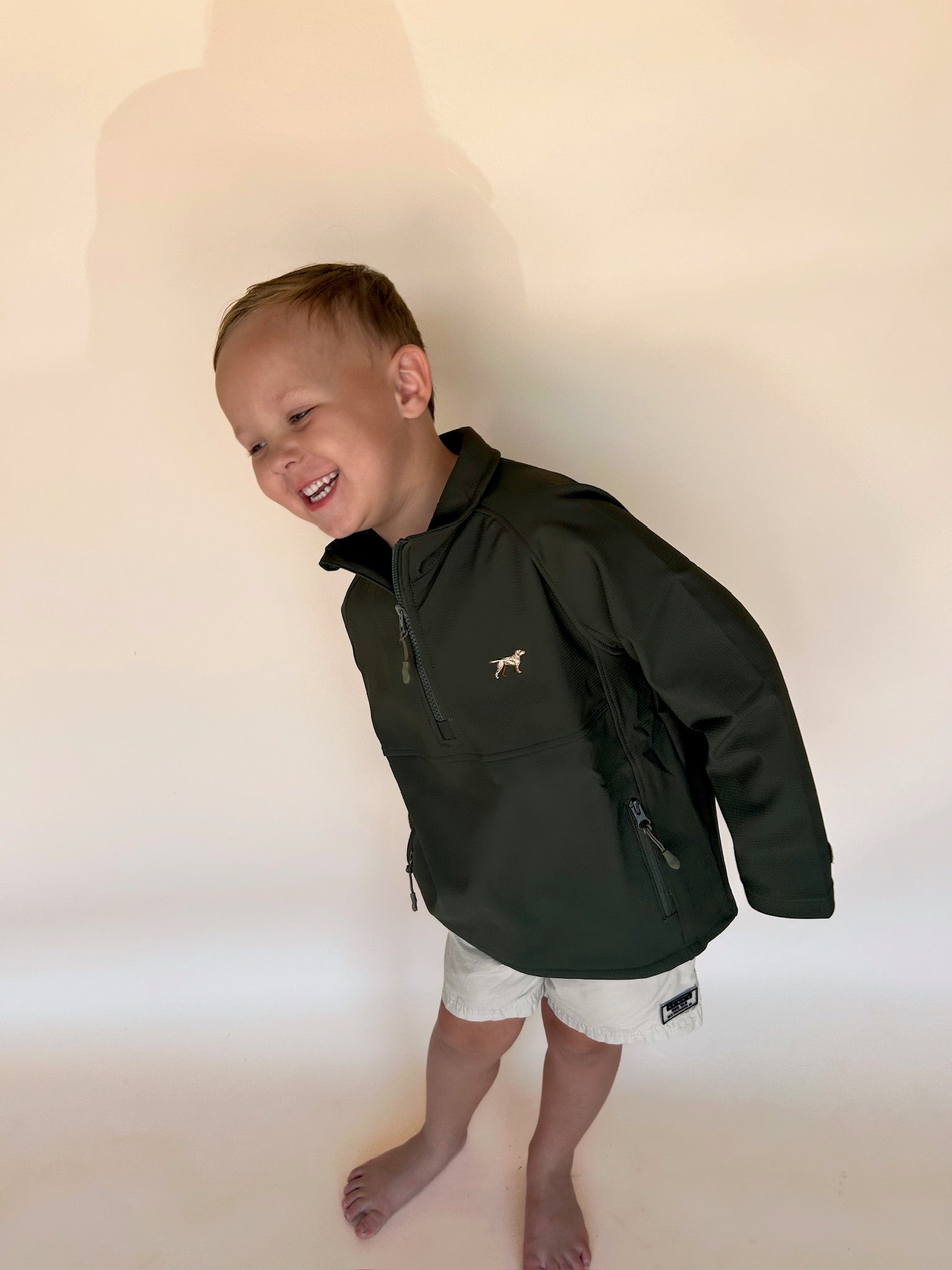 Stay cozy and ready for adventure with the Dogwood Pullover! Crafted from soft-shell interlock fleece, it offers gentle warmth and comfort. Features like lower zipped pockets keep your essentials safe, while the deep quarter-zip neck lets you adjust your style on the go. The elastic waist hem adds a snug fit that moves with you. Perfect for layering or wearing solo, this pullover makes comfort playful and functional.